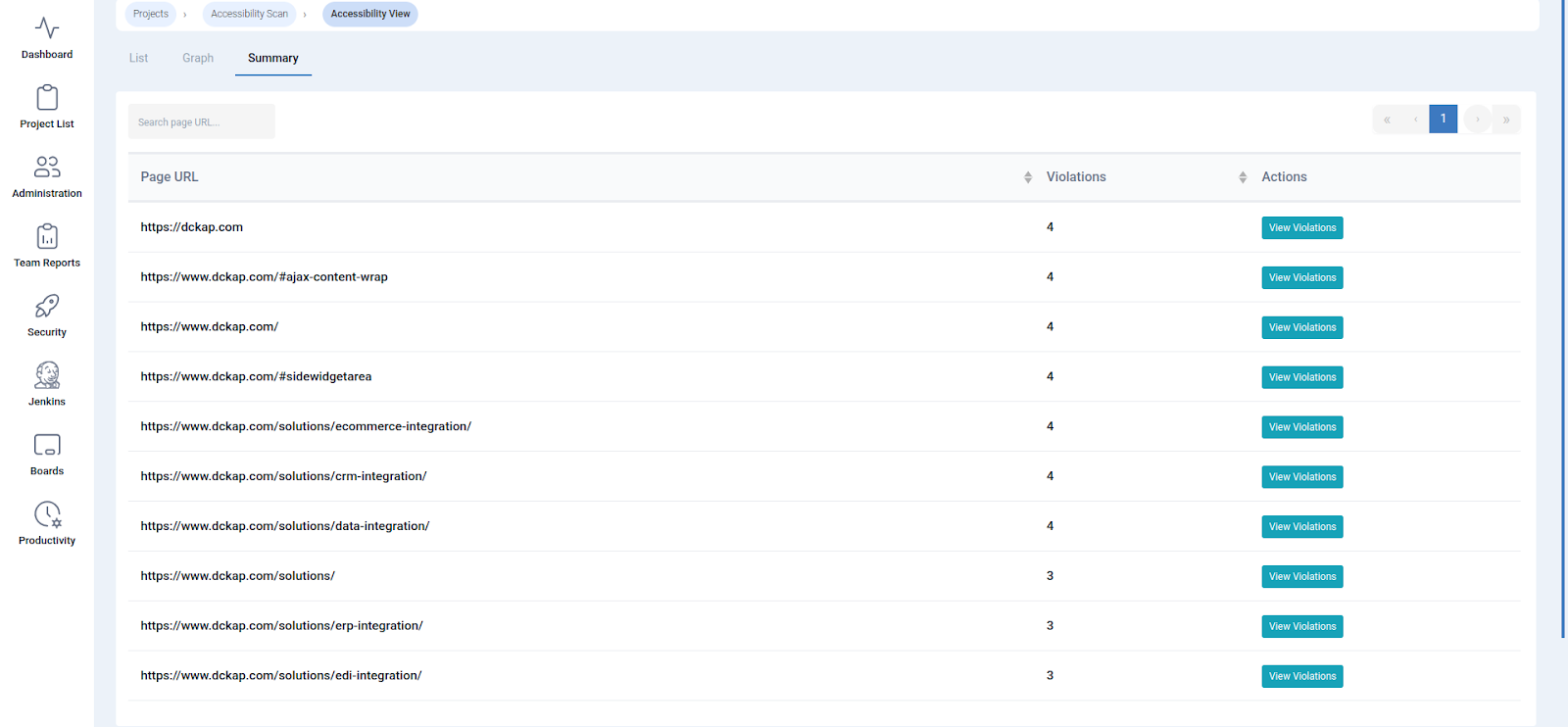 Explain how the tool provides a clear, actionable list of accessibility issues, including the specific page, the rule violated, the impact, and a direct fix.