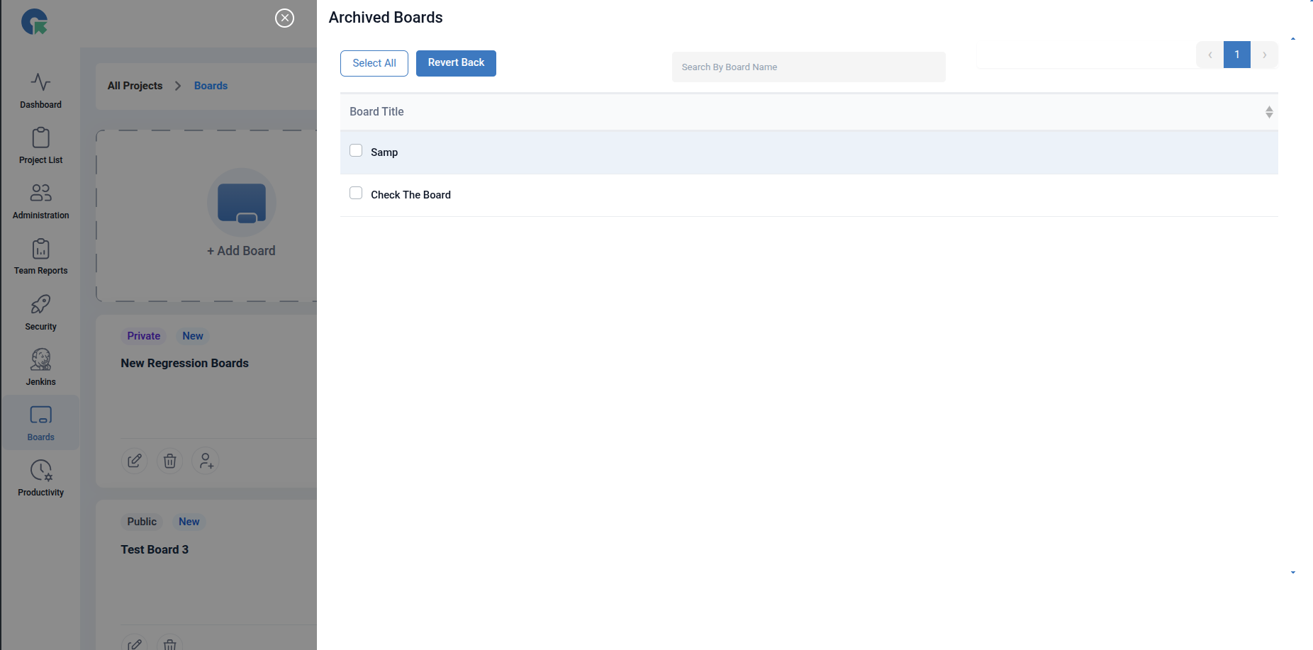 To revert back the archived board, goto archive menu select the required boards and revert back .