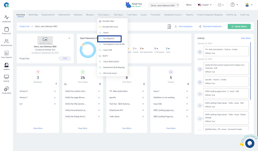 - Goto Project Overview and navigate to the import page by clicking on Test Cases -> Data Migration