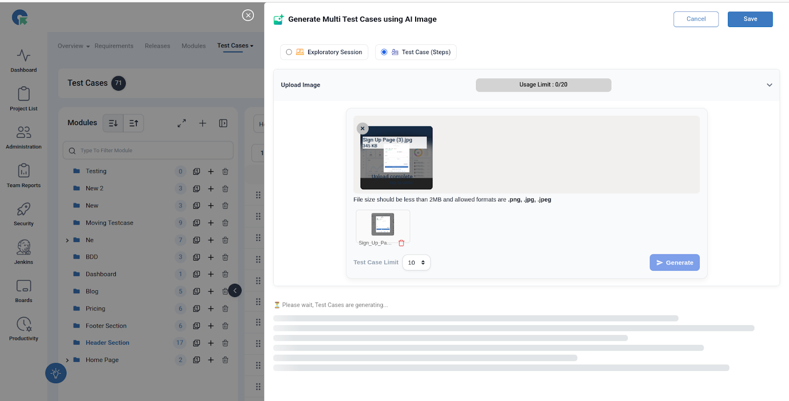 - Click “Generate Multi Test Cases using AI Image.”