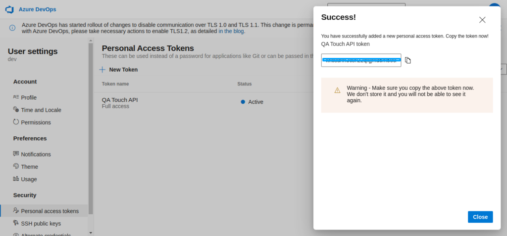 - Generate the API Key (Personal Access Token) in Azure Boards