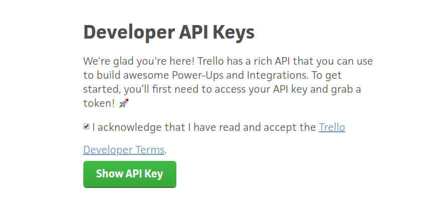 The API Key and API Token are generated in Trello, https://trello.com/app-key/