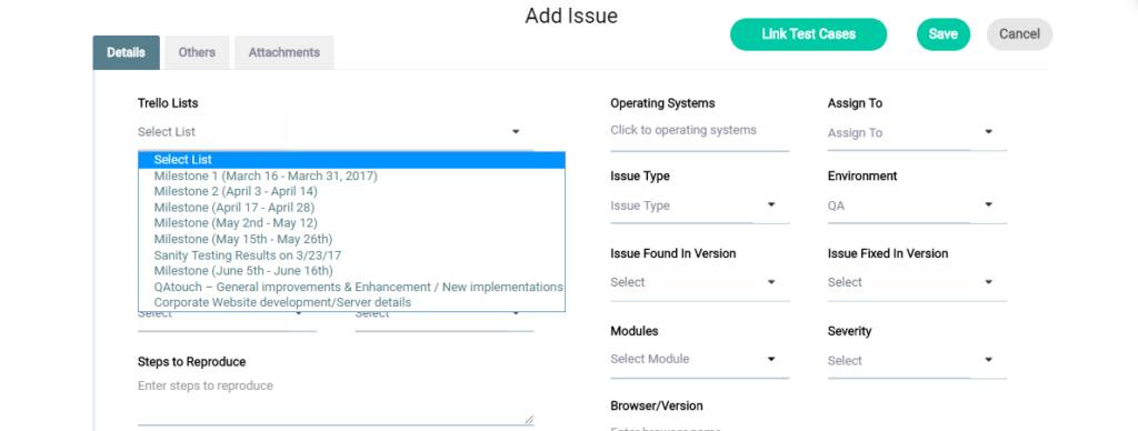Trello Integration with QA Touch is really seamless and easy. Trello can be blended with QA Touch in a short period of time by following the steps below: