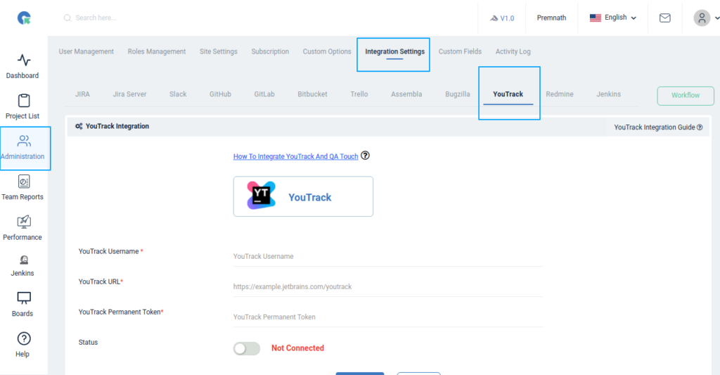 Here’s the step-by-step guide one should be following for a successful and seamless YouTrack Integration with QA Touch: