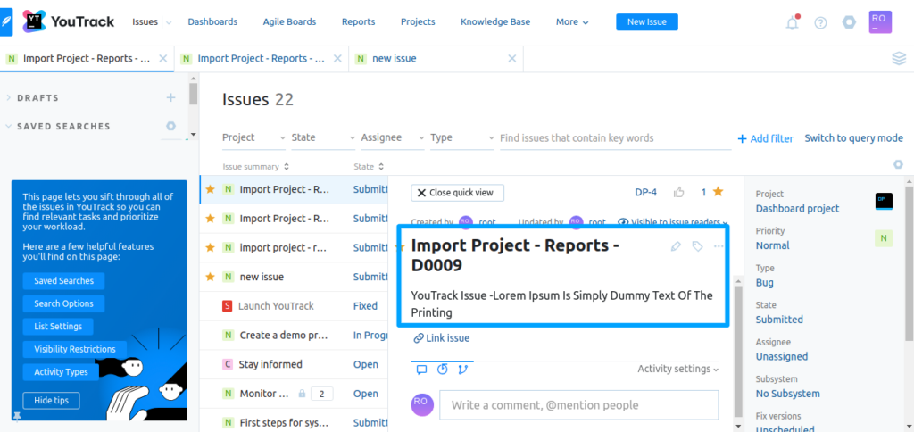 Add Issue From QA Touch. Once we create an issue it will be automatically synced with the YouTrack Integrated project.