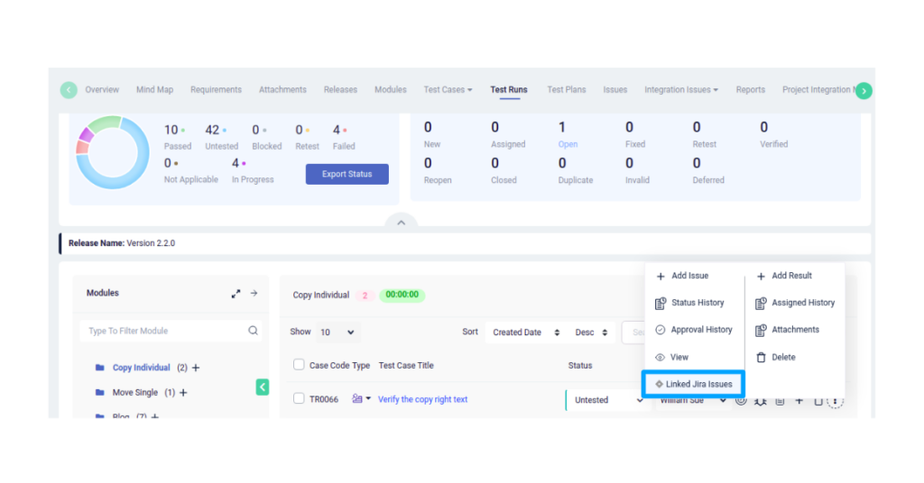 - To check JIRA Issues Linked with the test run