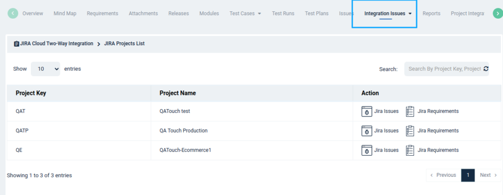 QA Touch introduces an option to configure multiple JIRA Projects with One QA Touch Project. Below are the steps explained in brief on how to configure multi JIRA Projects with detail steps below: